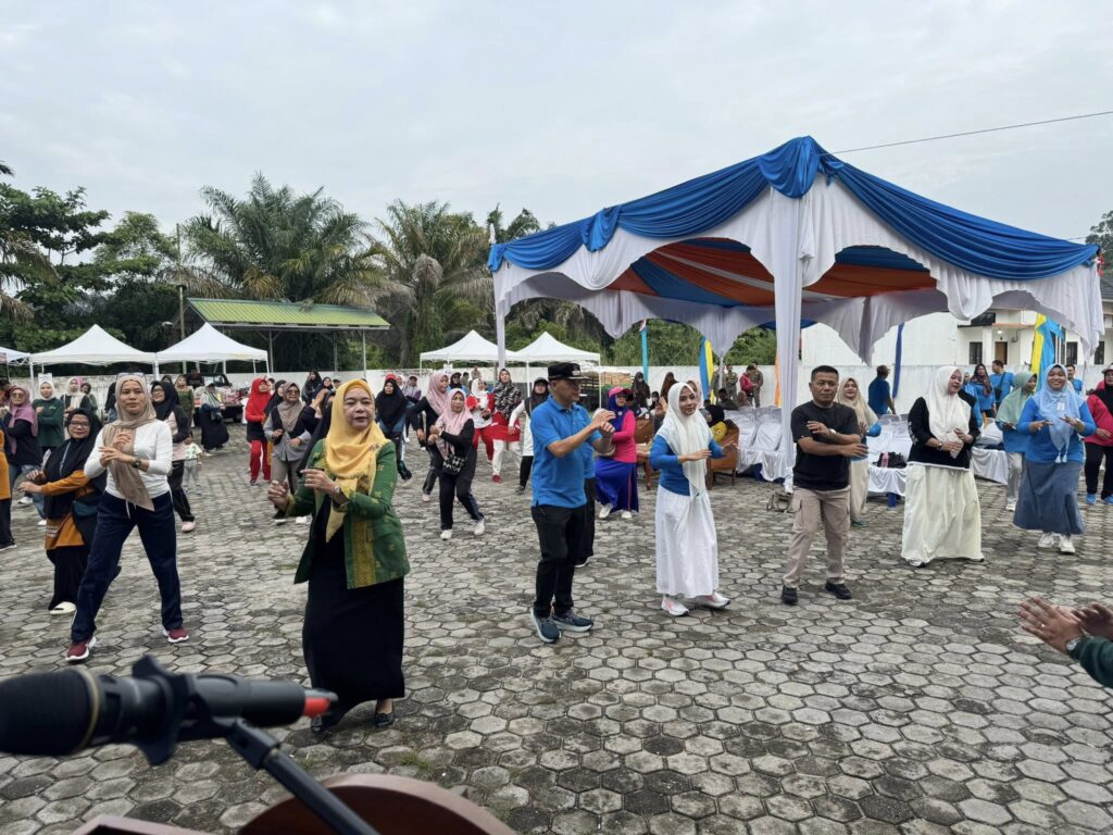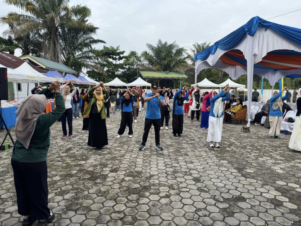 PEKANBARU – Camat Tuah Madani, Dr. Nurhasminsyah, S.STP., M.Si, bersama Ketua TP. PKK Kecamatan Tuah Madani Dina Meriza Hasmin, SH, para Lurah dan Ketua TP. PKK Kelurahan se-Kecamatan Tuah Madani, Ketua RT dan RW, pengurus LPM, serta warga masyarakat, mengikuti kegiatan Senam Sehat Bersama yang dilaksanakan sebelum pembukaan Pekan Pangan Aman, bertempat di Halaman Masjid Nurul Jannah Kelurahan Sialangmunggu, Kecamatan Tuah Madani, pada 11 Desember 2025.
