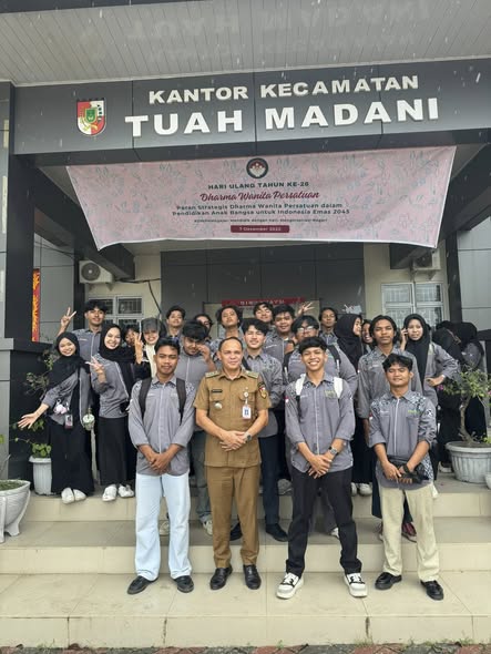 Dalam kesempatan tersebut, Camat Tuah Madani menyambut baik kehadiran para mahasiswa dan menyampaikan gambaran umum mengenai tugas dan fungsi kecamatan, khususnya dalam membangun komunikasi yang efektif antara pemerintah dan masyarakat.